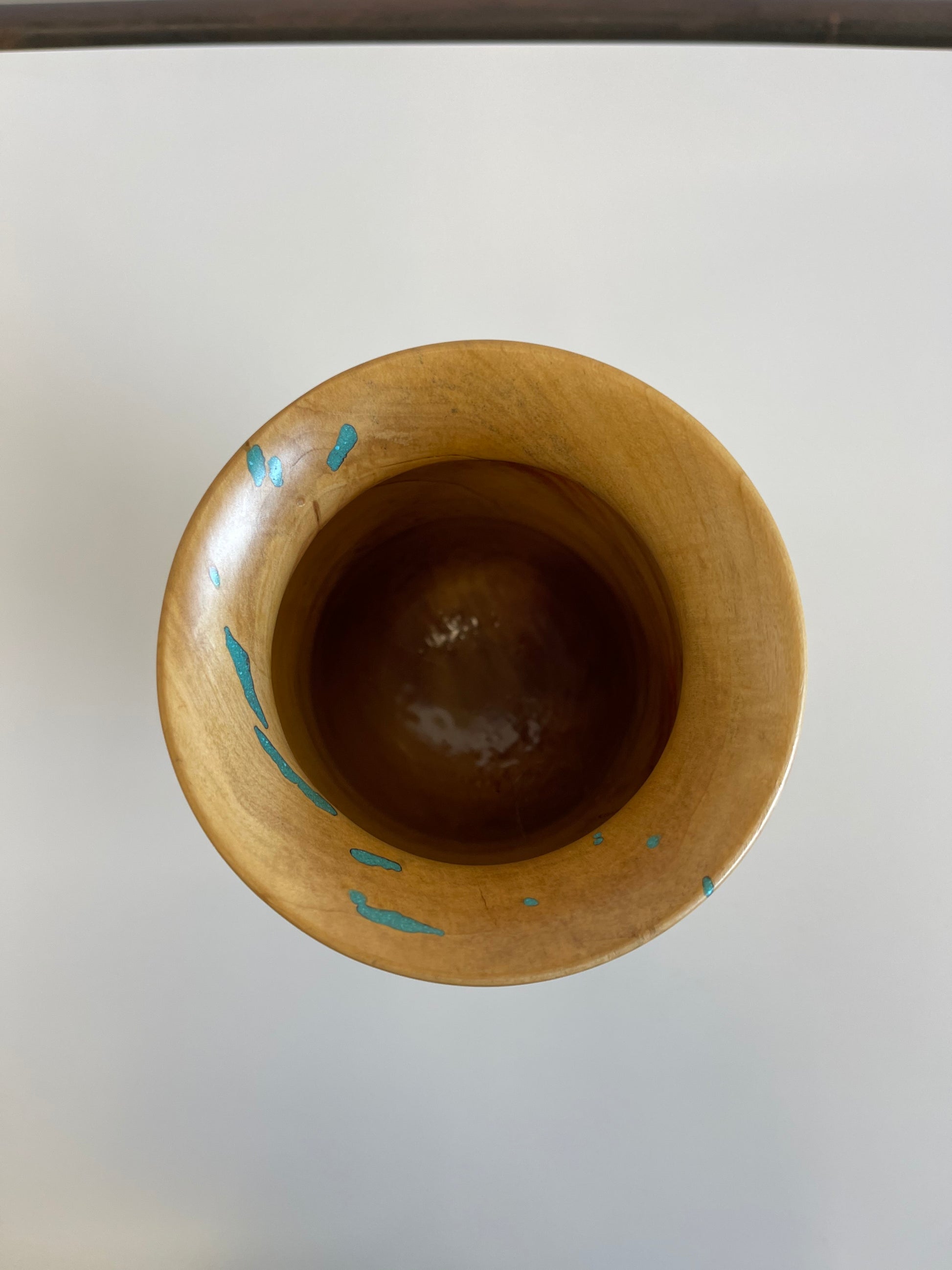 Studio-craft Turned Wood Vase with Turquoise Inlay